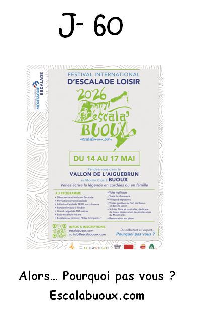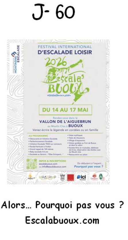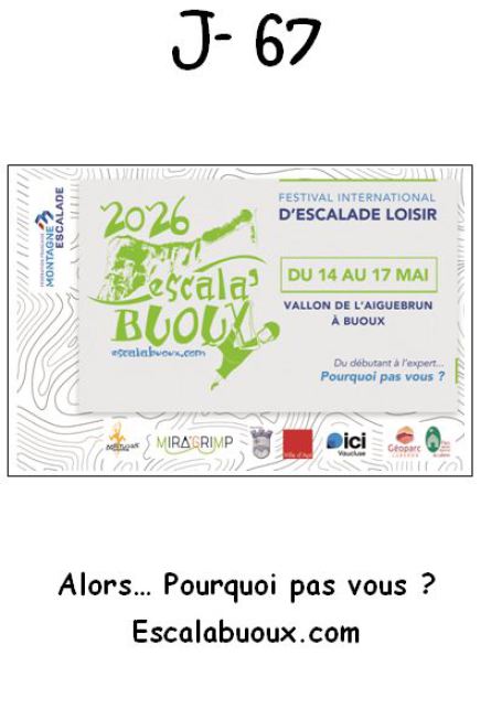 ESCALA’BUOUX est un événement grand public : rencontre Internationale d’escalade de loisir sur les falaises de Buoux. Cette manifestation accueille aussi bien des grimpeurs chevronnés qu'un public familial désireux de découvrir un patrimoine naturel et culturel remarquable.